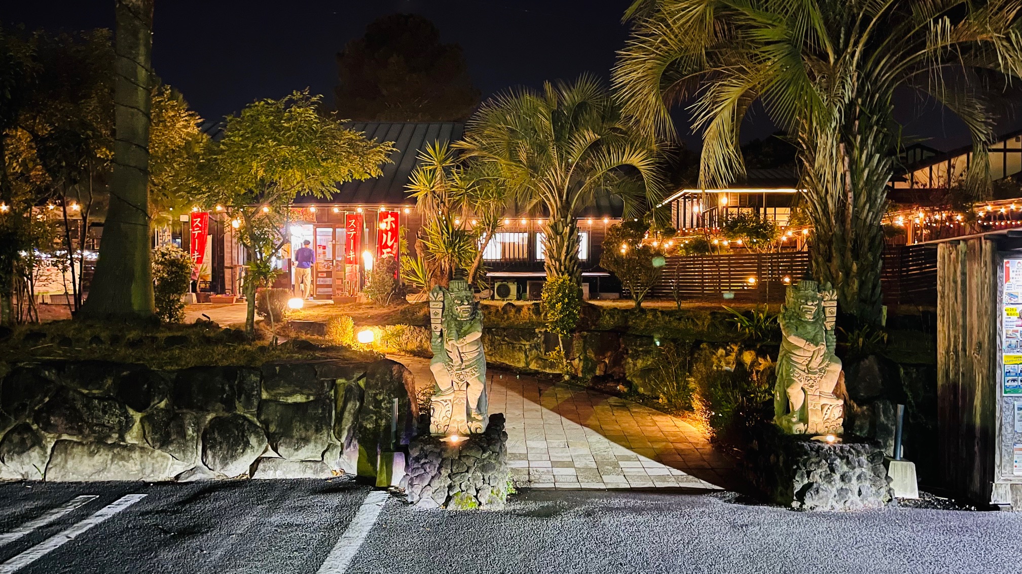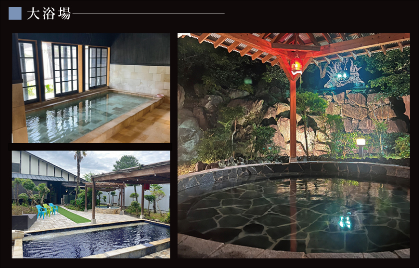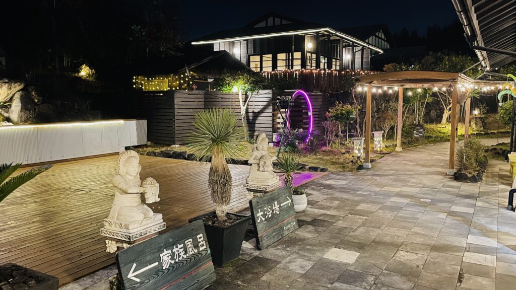 アジアンテイストの素敵な施設施設全体がライトアップされ、露天風呂からの眺めがとても素敵。