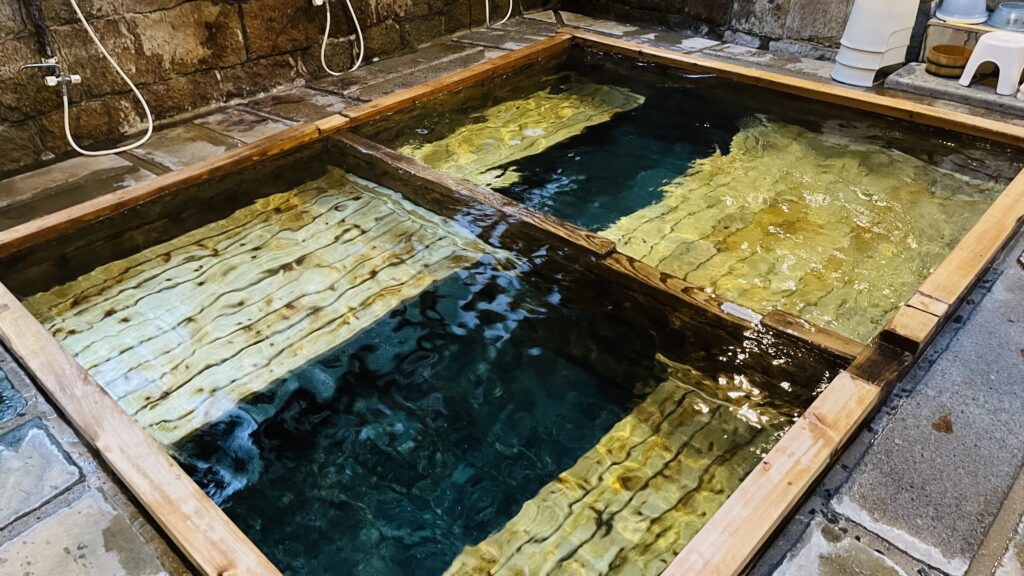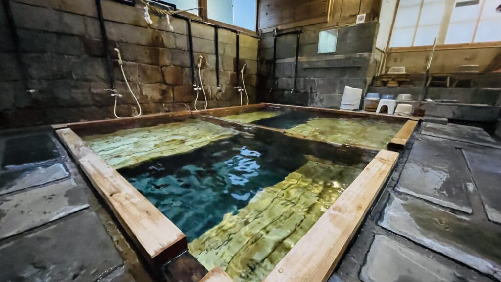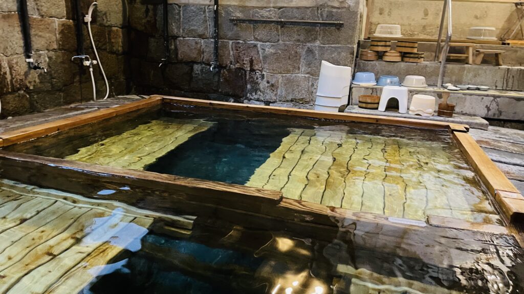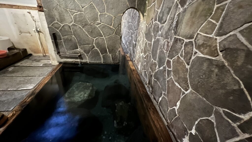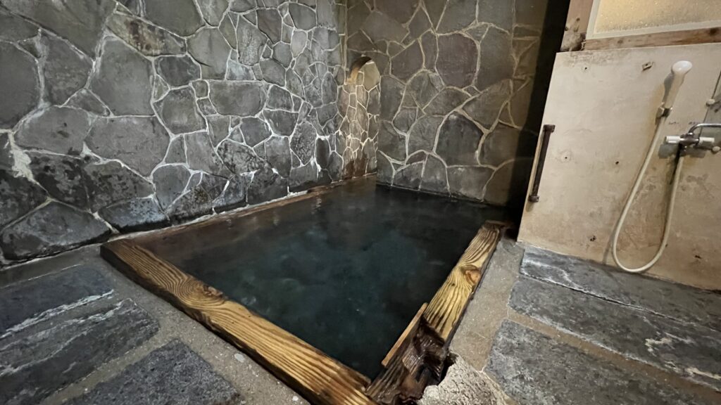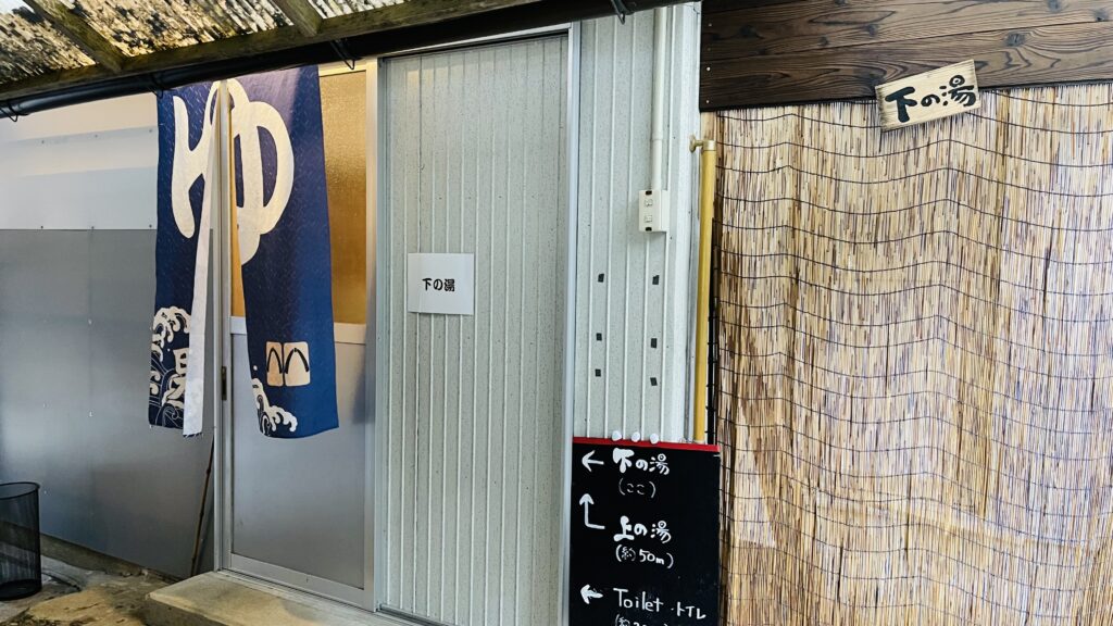 上の湯(偶数日が男湯)』と『下の湯(奇数日が男湯)』のふたつの温泉があり、男女日替わり。いずれも足元自然湧出。今回は『下の湯』だったので、そちらのレビュー。